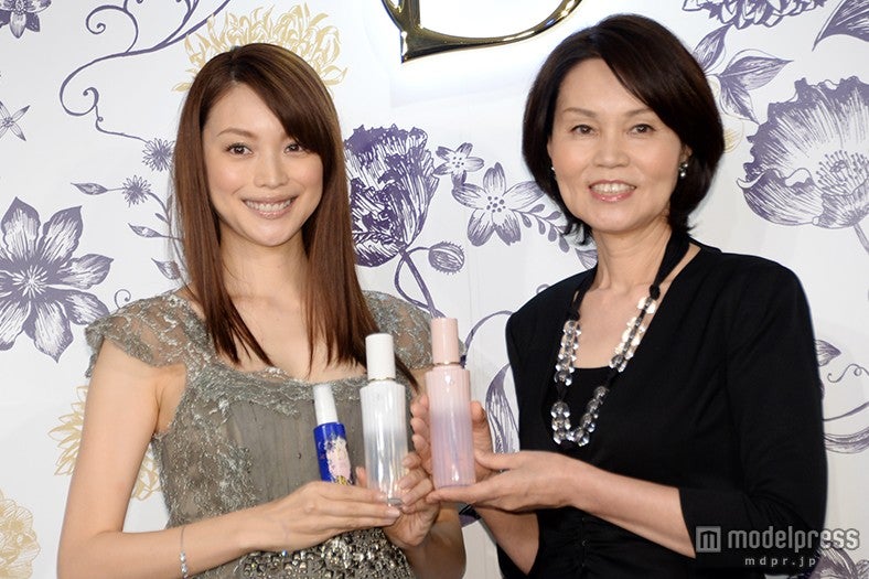 23日、都内で行われたスキンケアブランドの新ライン発表会に出席。この日は、6月に自身のブログで第1子を妊娠していることを発表して以来、初の公の場に。また、母親・真由美さん(59)も出席し、美人親子揃っての会見となった。