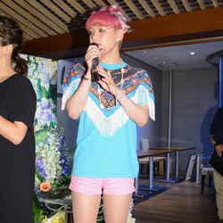 モデルでタレントの小森純が21日、都内にて行われたヘアケアブランド「Ahalo Butter(アハロバター)」新商品発表会に、原宿の竹下通りにあるアパレルショップの店員で、若者にカリスマ的人気を誇り“原宿の母”としても親しまれているぺえと出席。小森は、3月に第2子を出産後、初めての公の場に姿をみせた。