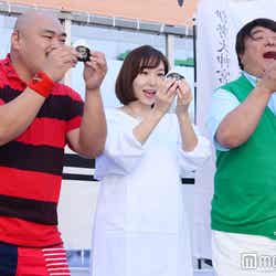 第2子を妊娠中の元モーニング娘。の加護亜依が27日、都内で行われたイベントにお笑いタレントでグルメレポーターの彦摩呂、安田大サーカスのクロちゃんと出席。安定期に入ったというふっくらとしたお腹を披露した。