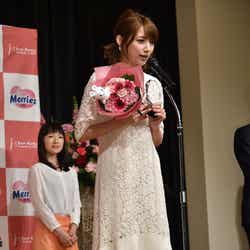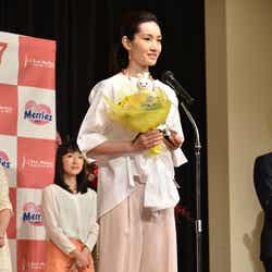 3月に第2子を出産したばかりのため、この日のイベントが仕事復帰となったようで、「緊張しますね」と不安を口にしつつも、自身の子育ての話になると「色んな方の助けがあって今ここに立っているんじゃないのかなと思います」、「2人目の男の子がしつこくって…男の子ってしつこいですね(笑)。毎日がバタバタです」などと笑顔で明かした。