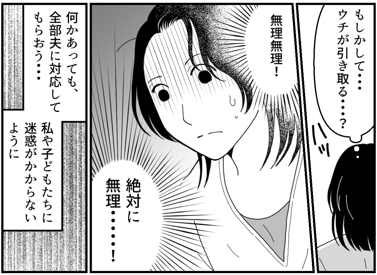 義兄の存在を隠していた夫には、最後まで責任をとってもらいたいです。何の罪もない子どもたちに、20年以上引きこもっている大人の責任を取らせるわけにはいきません。先のことを考えるとますます恐怖が襲ってきます。けれど……。