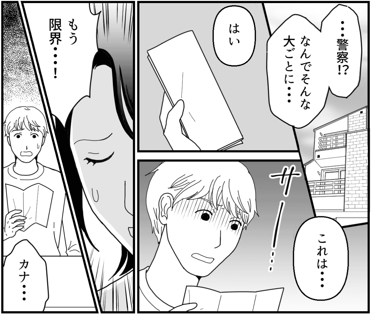 私(カナ)は結婚して16年。夫のマサトとユウマ(中1)、レイ(小5)、タクト(小2)と暮らしてきました。そんなある日義母に大病が見つかり、夫に20年以上引きこもっているお兄さんがいることを知らされました。夫が「私や子どもたちを義実家とは関わらせない」と約束してくれましたが、義母は協力しない私に対して相当な恨みを抱いたようです。今日は一家心中を示唆するような手紙を家のポストに入れてきて、警察に相談する事態になりました。