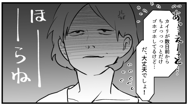 さらに食事の席にはカイリくん本人が現れ、咳をしはじめます。ショウコさんは内心穏やかではありませんが、場の空気を壊すわけにもいきません。