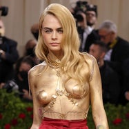 【メットガラ2022】カーラ・デルヴィーニュ、黄金ボディペイント×ニップレスの攻めルックで圧倒