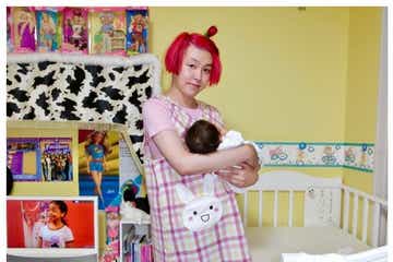 ぺえ、ぺこ&りゅうちぇる第1子リンクくんに念願の対面 すっぴん&保育士コーデに反響