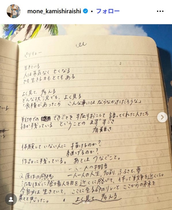 上白石萌音、直筆メモ公開 主題歌務める映画原作への思いに「綺麗な字」「言葉選びが素敵」と反響