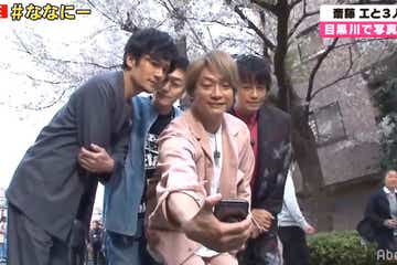 稲垣吾郎・草なぎ剛・香取慎吾、斎藤工と“目黒川お花見”で大パニック