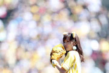 NMB48山本彩、ミニスカ×トラ耳で美脚全開始球式