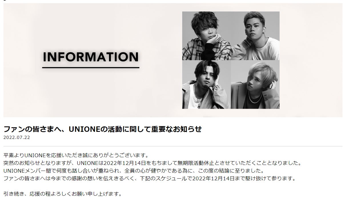 2016年12月14日にはUNIONE 1st Anniversary Special Live " As One"を渋谷duo MUSIC EXCHANGEにて開催。