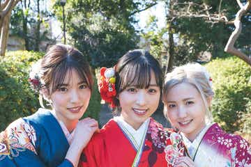 AKB48“新成人”小栗有以&本田仁美&下尾みう、華やか晴れ着姿で密着ショット