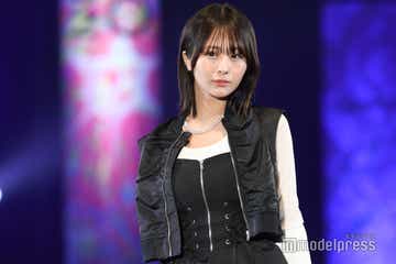 ≠ME尾木波菜、シックなモノトーンコーデで登場 甘めアクセ使いがキュート【札幌コレクション 2024 A/W】