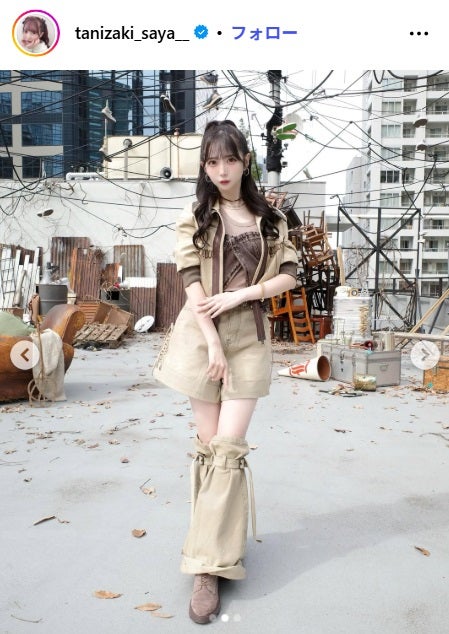 ≠ME谷崎早耶、ミニ丈×ロングブーツから美脚チラリ「可愛すぎて罪」「脚綺麗」の声
