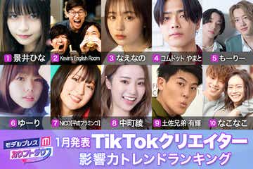 1月発表「TikTokクリエイター影響力トレンドランキング」TOP10を発表【モデルプレスカウントダウン】