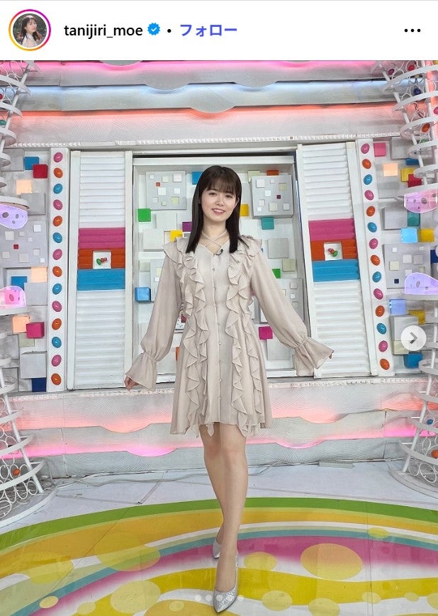 谷尻萌アナ、美脚スラリ膝上ワンピ姿に反響「ドキッとした」「お人形さんみたい」