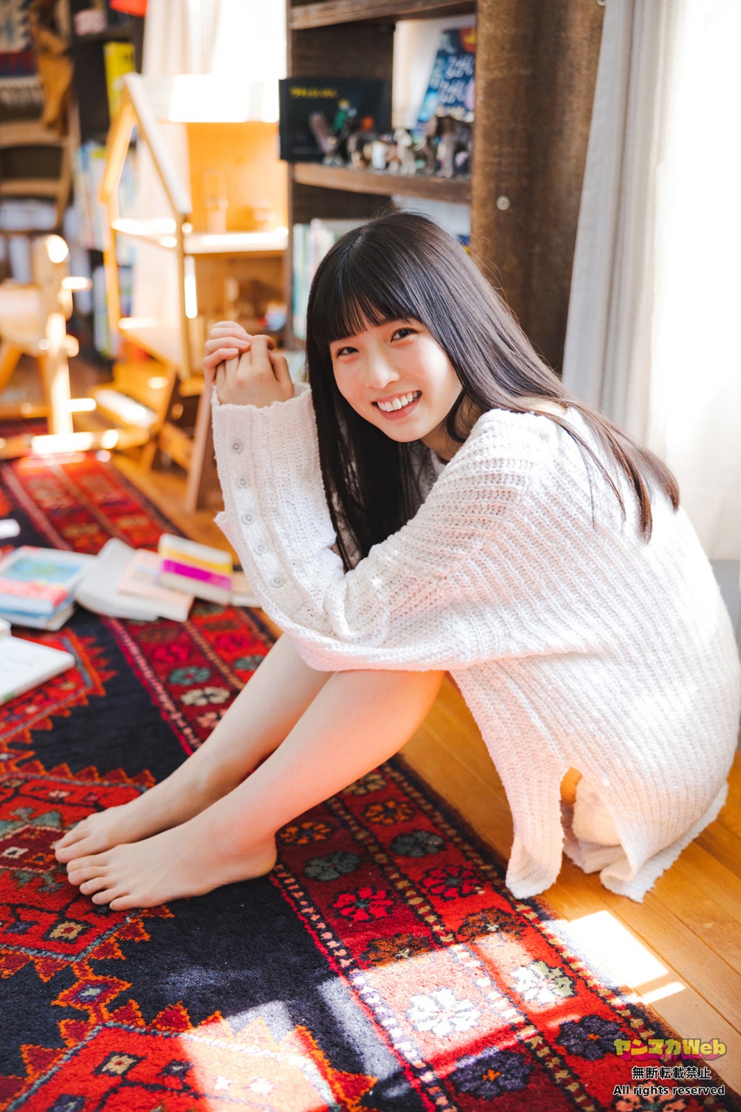 STU48尾崎世里花、部屋着姿で美脚チラリ