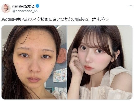 美容系YouTuber・nanakoななこ、メイクのビフォーアフターに反響殺到「努力の塊」「尊敬」