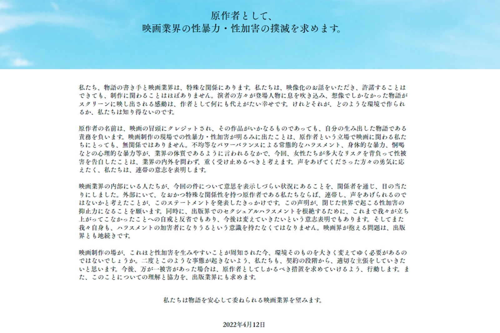 山内マリコ・柚木麻子、原作者として映画界の性暴力撲滅訴え 湊かなえら女性作家が賛同