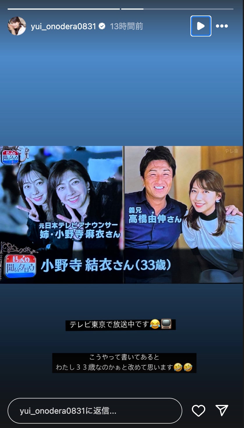 元日テレアナの妹・小野寺結衣、アナウンサーに転身した理由とは 元ジャイアンツ高橋由伸氏は義兄