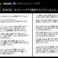 フォーエイト48ゑむ氏。、脱退発表「パワハラと感じる言動やいじめと感じるやり取りが重なることも」手書き文書で理由明かす【全文】