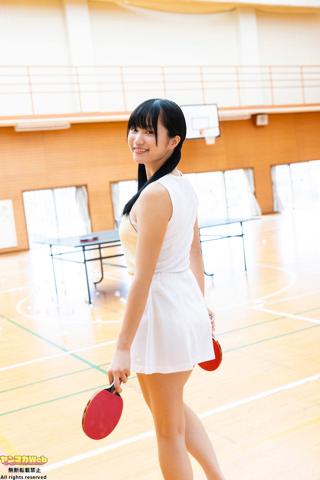 体育会グラドル・植原ゆきな、色白バストに釘付け 水着姿で卓球披露