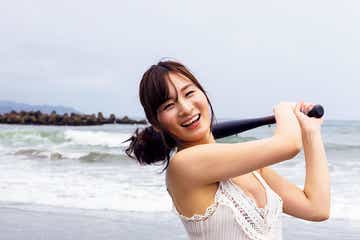 注目の長身グラドル・清瀬汐希、美谷間にうっとり 浜辺でフルスイング
