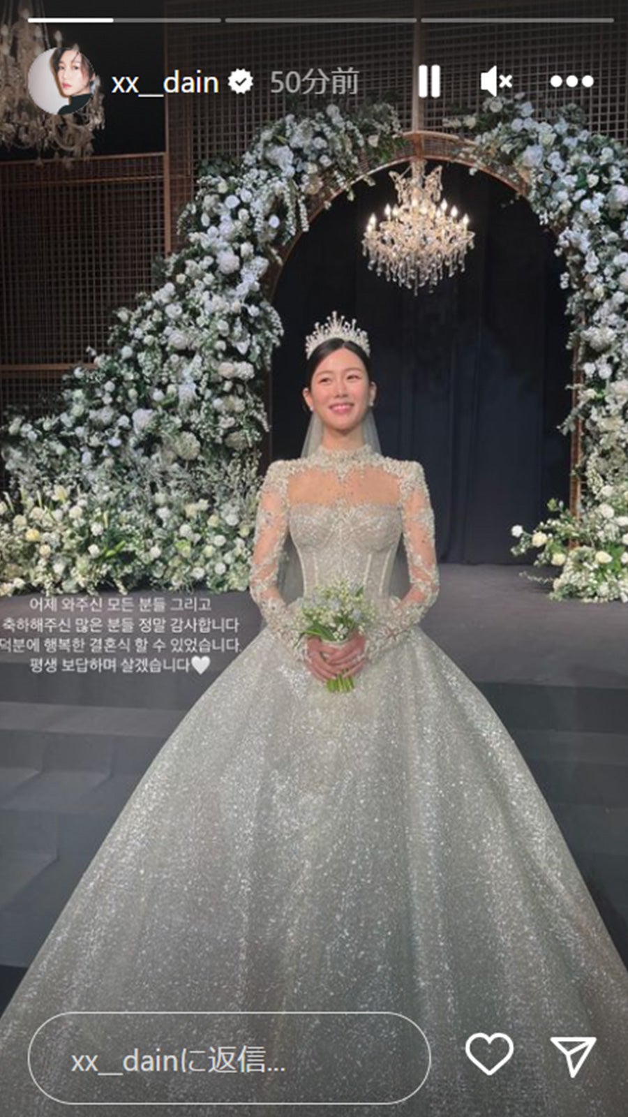 イ・スンギ、“妻”イ・ダインの額にキス 挙式報告&密着ウエディングフォト公開