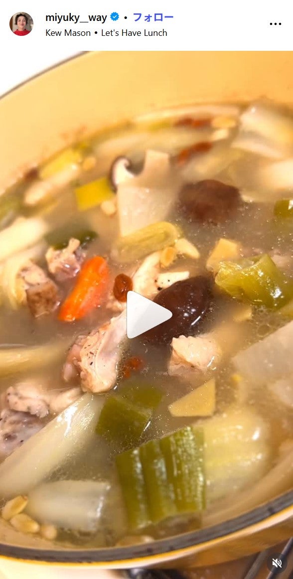 香坂みゆき「参鶏湯風」手作りスープ公開「具沢山で美味しそう」「本格的」と反響