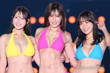 熊田曜子ら、突如コート脱ぎ水着姿に 清流あゆ・白川愛梨と美バスト開放【関西コレクション 2024 S/S】