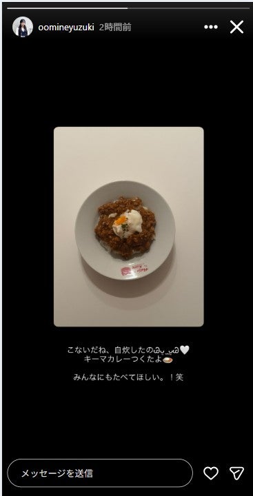 「今日好き」大嶺夢月希、手作りキーマカレー披露「半熟卵乗せるの最高」「盛り付けが可愛い」と反響
