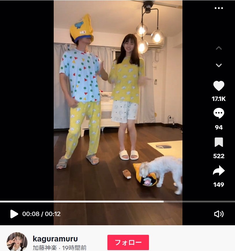 結婚&出産の「日プ女子」加藤神楽、夫とパジャマ姿で踊るTikTok動画に反響続々「旦那さん優しそう」「身長差素敵」