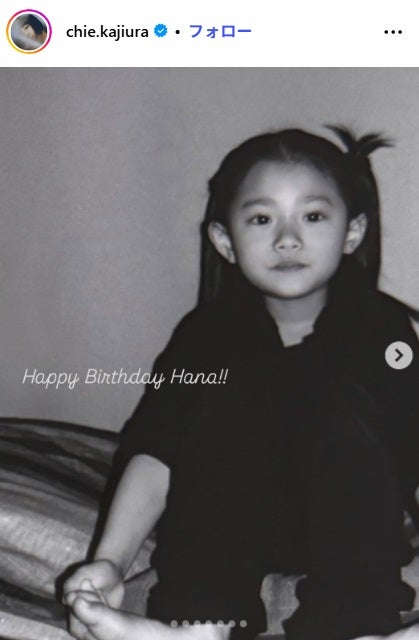 チエ・カジウラ、娘・杉咲花の誕生日祝福で幼少期ショット公開 “命懸け”だった出来事も明かす