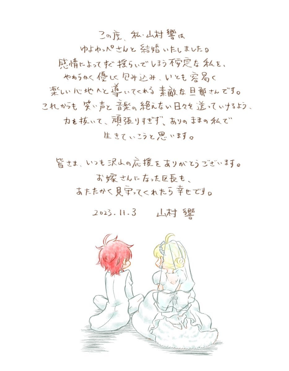 声優・山村響&ミュージシャン・ゆよゆっぺ、結婚発表 密着ウエディングフォトで報告