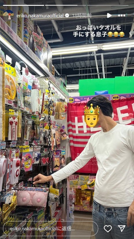 中村江里子アナ「おっぱいタオルを手にする息子」公開「面白すぎる」「抜群スタイルにしか目が行かない」の声