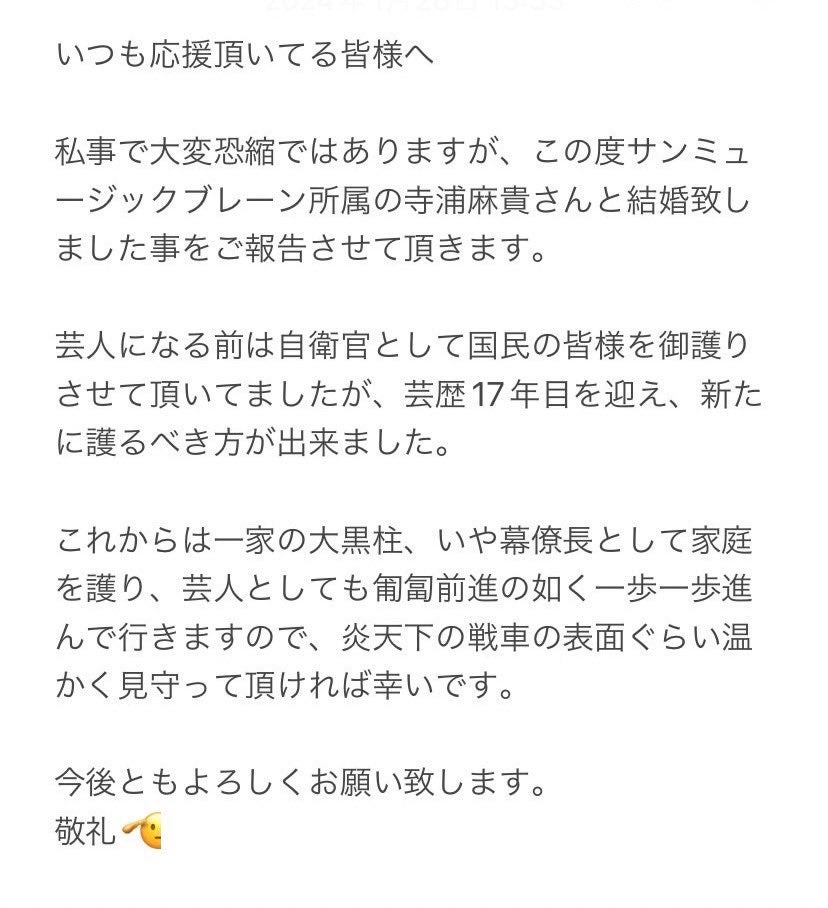 ヘンダーソン子安裕樹&女優・寺浦麻貴、結婚を発表「新たに護るべき方が出来ました」<全文>