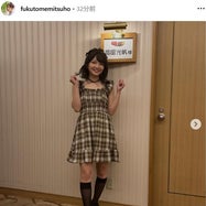 “大喜利の逸材”で話題・元AKB48福留光帆、ミニスカ制服風コーデで美脚披露