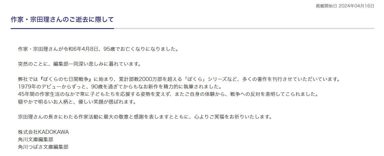 作家・宗田理さん死去「ぼくらの七日間戦争」など