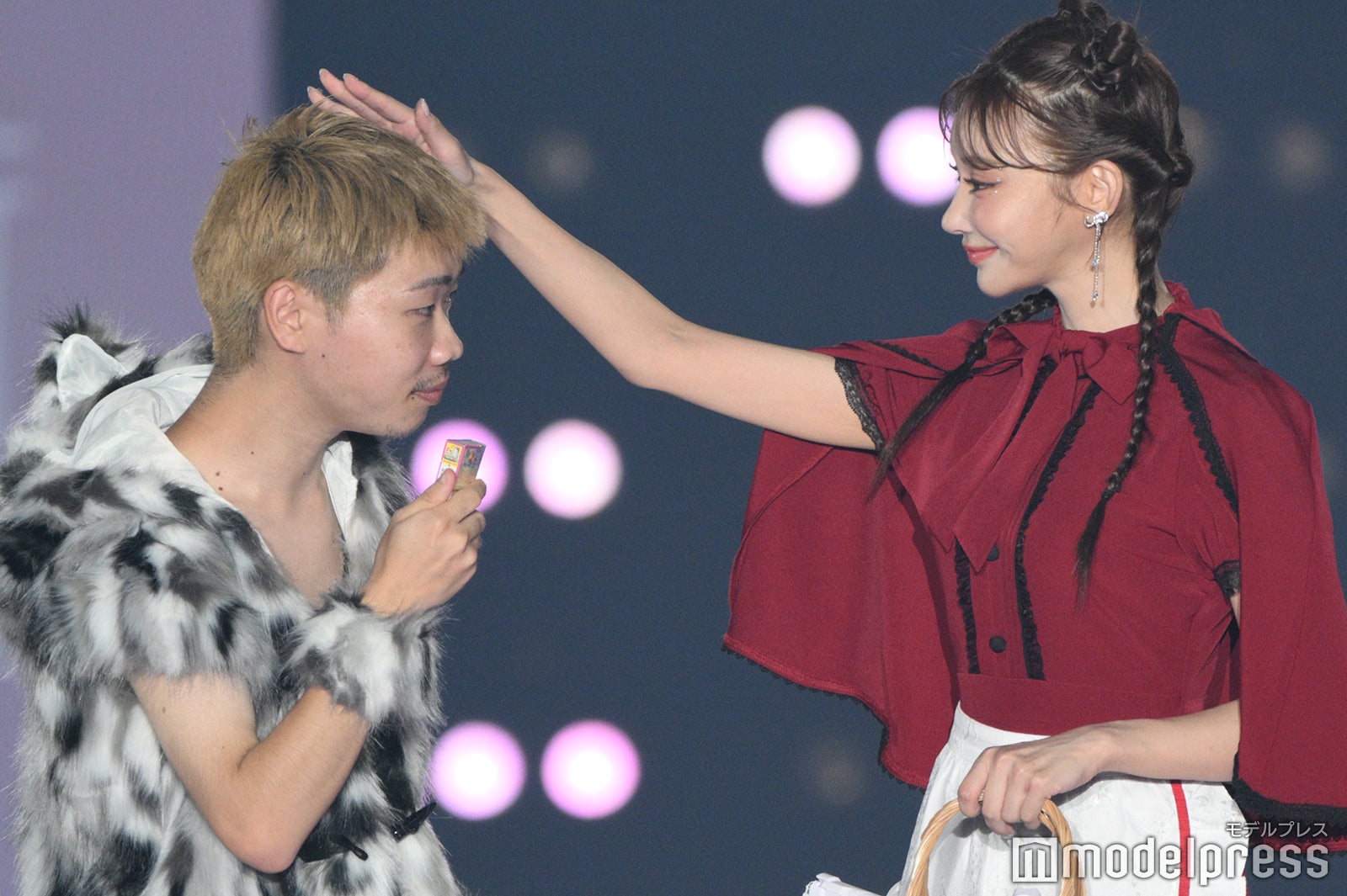 交際宣言の明日花キララ&ヒロック、頭ポン・ハートマークでラブラブ全開「炎上中では?関係は?」の質問に回答【関西コレクション 2024 A/W】