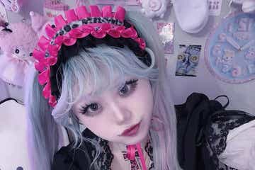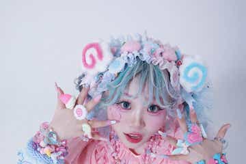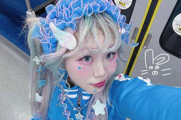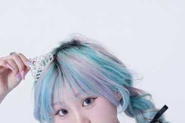 “犬系彼女”でバズ・ののち、水色のラブリー衣装×ド派手ツートンヘアで存在感【関コレ2025S/S】