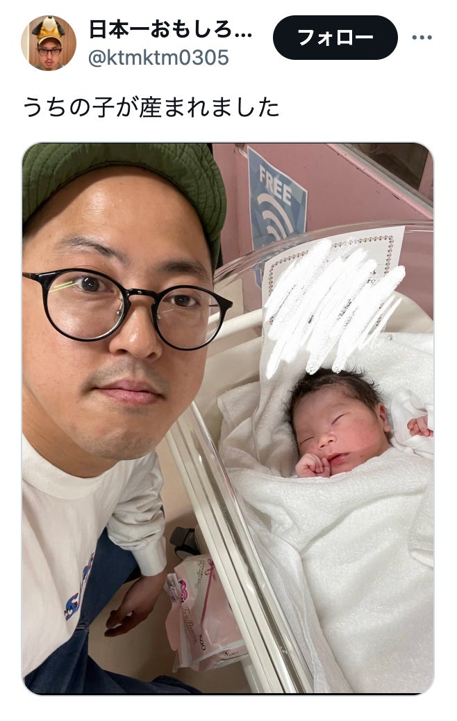 ちゃんぴおんず大崎、第1子誕生 2ショットで報告「うちの子が産まれました」