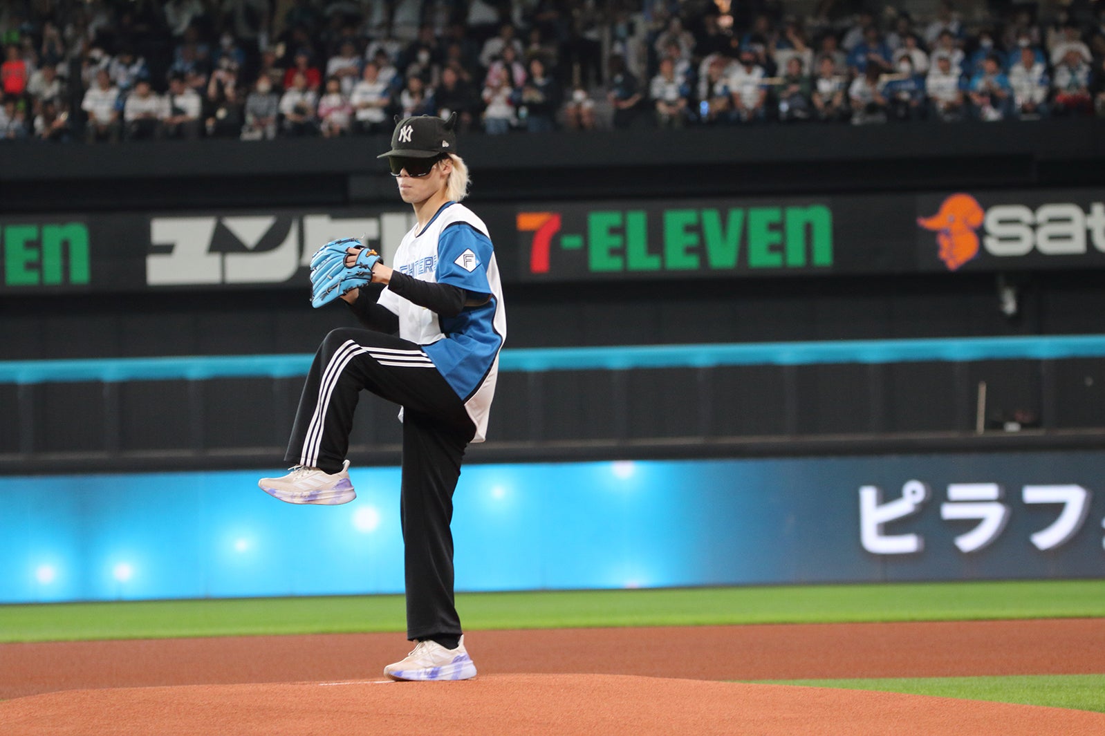 若手人気ラッパー・ピラフ星人、ファーストピッチでノーバン投球披露 ミニライブにファン熱狂