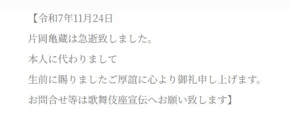歌舞伎俳優・片岡亀蔵さん死去 64歳 12月京都南座に出演予定だった