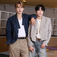JO1川西拓実&河野純喜、“メロクロ”コーデで登場 プライベートでの「お忍び純拓デート」実現願う