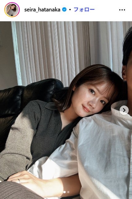 元乃木坂46畠中清羅、夫の肩に頭乗せた密着ショット公開「ラブラブ」「仲良し夫婦」の声