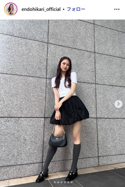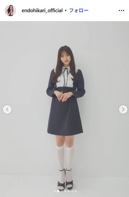 櫻坂46遠藤光莉、膝上ワンピから美脚スラリ「上品」「似合ってる」の声