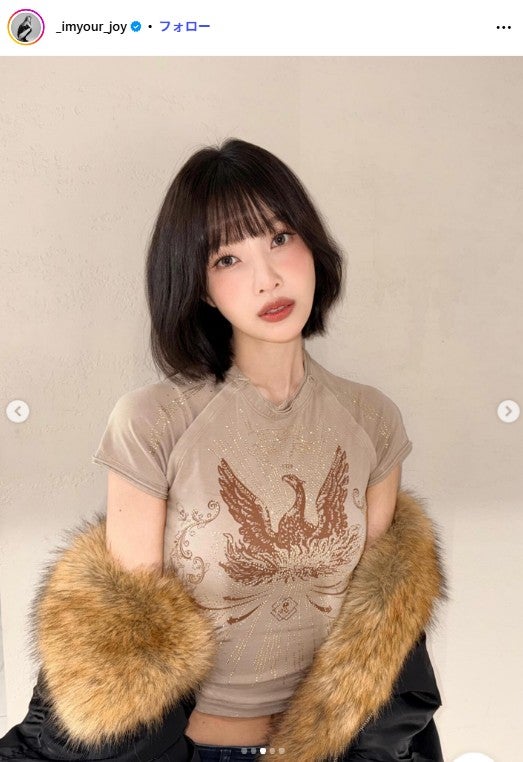 Red Velvetジョイ、ミニ丈シャツからほっそりウエスト披露「引き締まってる」「美しすぎ」と反響