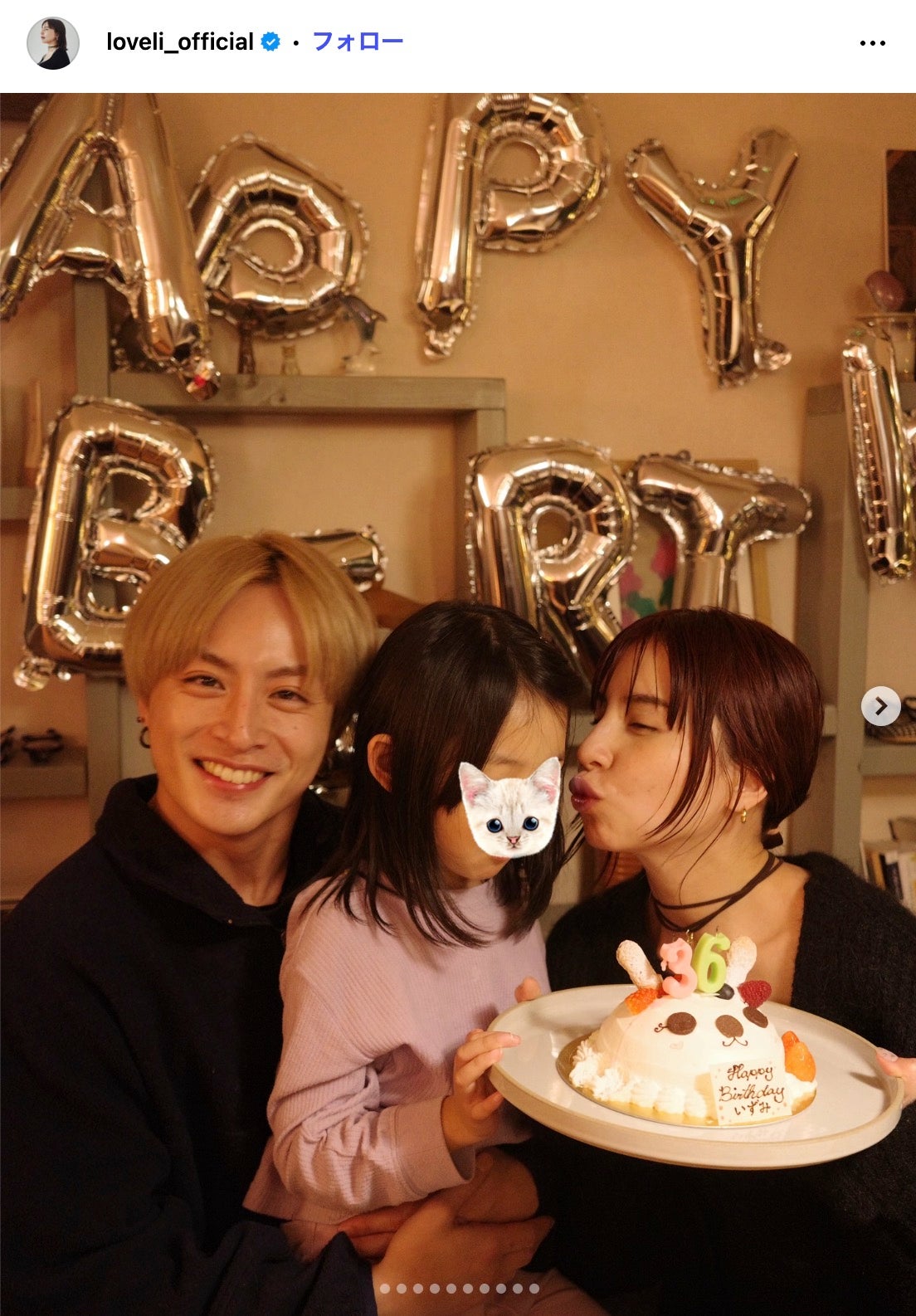 ラブリ、夫・米倉強太氏との挙式を報告 娘との3ショットも公開