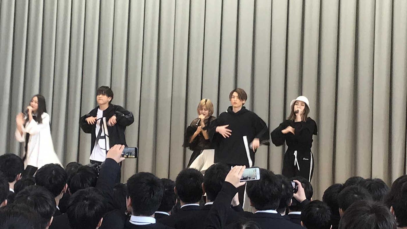 男女混成5人組ダンス&ヴォーカルグループ・lol-エルオーエル-が1日、三重高等学校をサプライズで訪問。卒業式でパフォーマンスを披露した。