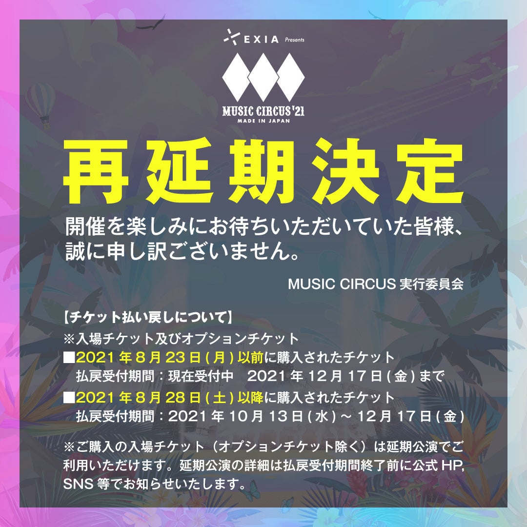 10月23日、24日に大阪泉南市で開催予定の音楽フェスティバル「MUSIC CIRCUS’21」の再延期が発表された。