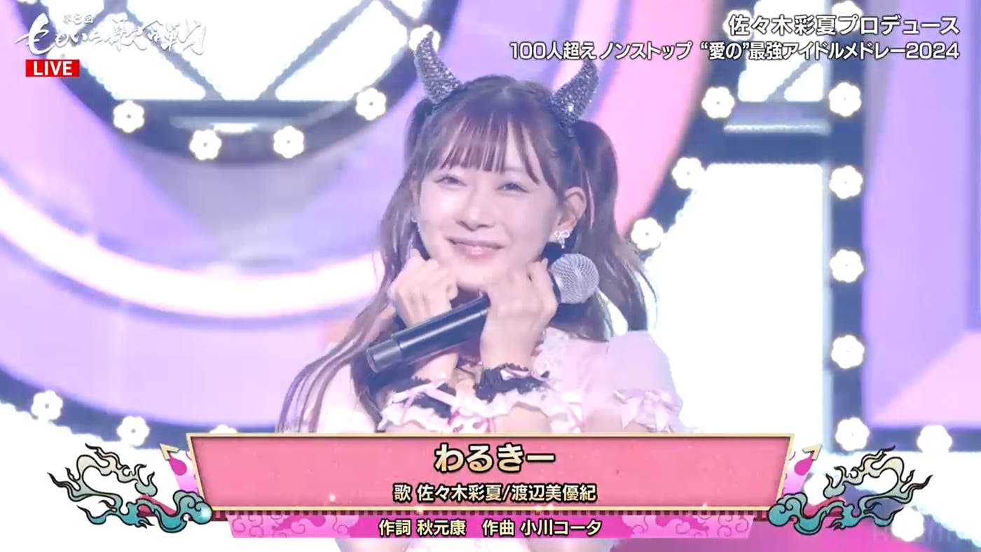 渡辺美優紀「わるきー」オリジナル衣装で登場 佐々木彩夏とコラボに反響殺到「2024年に見れるとは」【第8回ももいろ歌合戦】