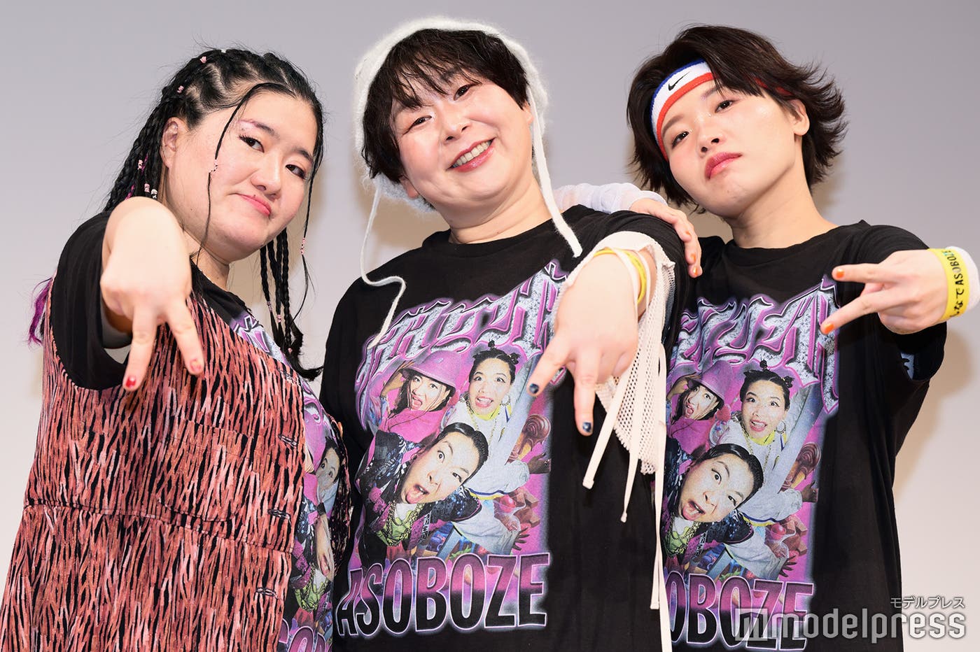 お笑いトリオ・森三中の大島美幸と、ガンバレルーヤ(よしこ、まひる)によるユニット・Mym(Miyuki / Yoshiko / Mahiru)が19日、都内のTOKYO FMホールにて初のファンミーティング「みんなでアソボウゼ」を開催。囲み取材ではイベントの感想や手応えを明かした。